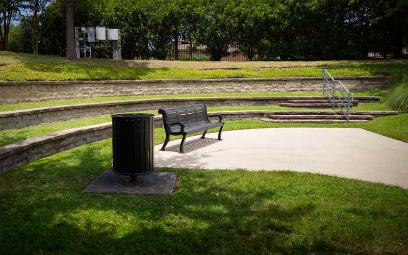 An outdoor amphitheater allows the community to relax on the raised benches or enjoy a play put on by community organizations.