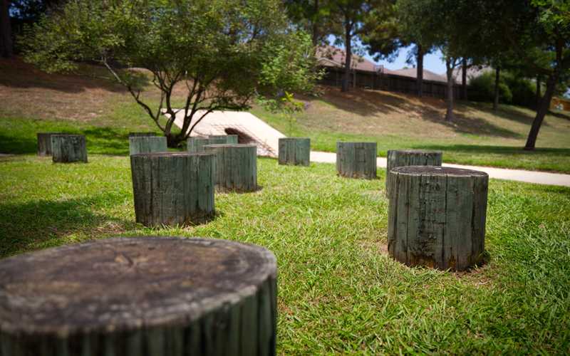 Amenities like this outdoor “stump playground” allow nearby McRoberts Elementary and other organizations to have outdoor classes in a comfortable outdoor setting.