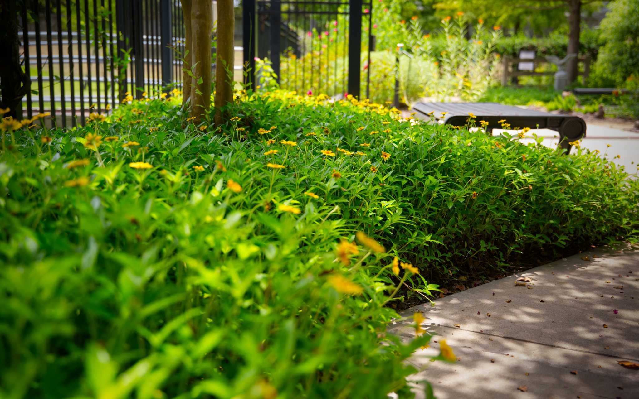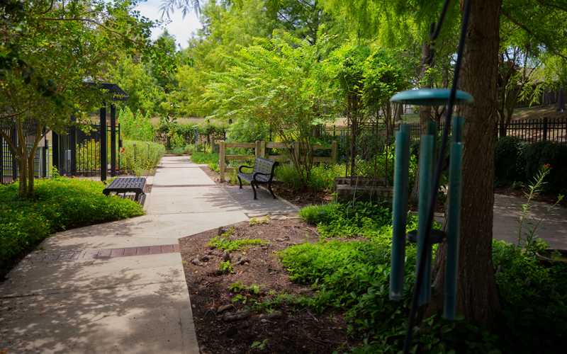 Ricewood Park’s sensory garden includes a windchime, several native plant species, statues and other decor that are easy for residents with disabilities that cause sensory overloads to enjoy the park in safety.